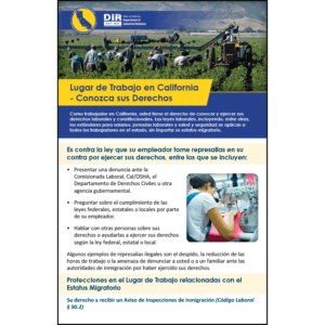 Our Workplace Know Your Rights Booklet mirrors the state’s official template notice and includes the full description of workplace rights and protections in the areas specified in the law.