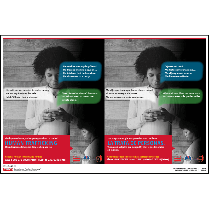 The District of Columbia law (D. C. Code § 22 – 1843) encourages businesses to post the District of Columbia Human Trafficking Poster in an effort to combat and prevent human trafficking.